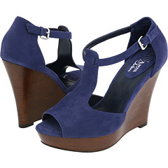 So here is a great wedge that has the perfect blend of two things that I currently want.....Blue suede platform and T-strap platform. It is the Renfrow Wedge by Cole Haan......terrific, right? I knew you would say YES!
